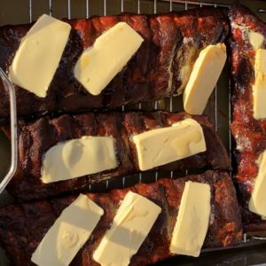 Zusätzlich kommt Butter auf die Ribs, Ihr schneidet einfach 0,5cm dicke Streifen aus der Butter und legt diese auf die Ribs.