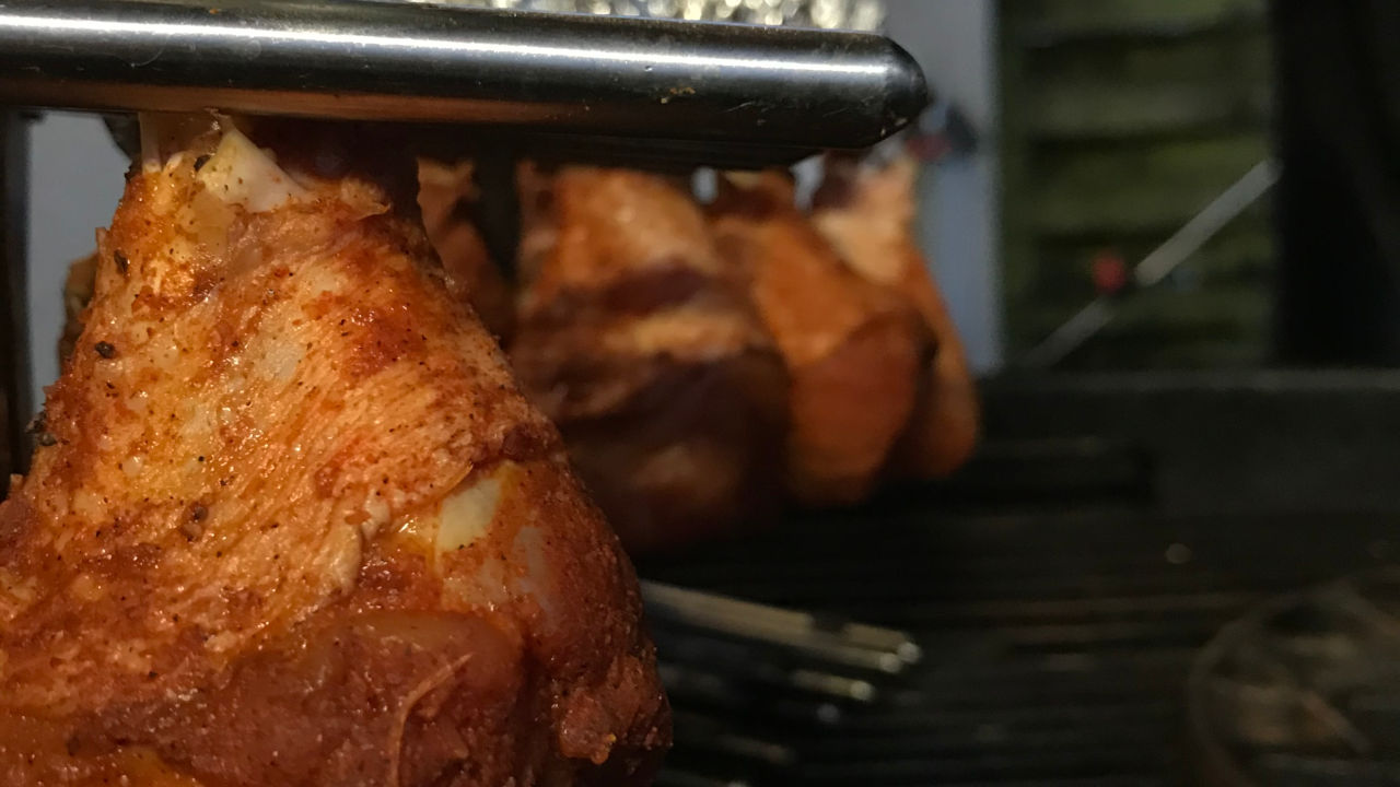 Die Lollis hänge ich immer in die „variera“ von Ikea. Man kann die aber auch einfach auf den Rost legen. Ich lasse die Lollis ca. 60 Minuten bei 150-180 Grad indirekt im Grill. Danach werden die Lollis noch lackiert, bzw. in eine BBQ Sauce getunkt. Dann hänge ich sie wieder für 20 Minuten in den Grill, Temperatur kann man am besten auf 100 Grad reduzieren. Ihr könnt auch den Deckel auflassen, wichtig ist nur, dass die Sauce schön fest wird.